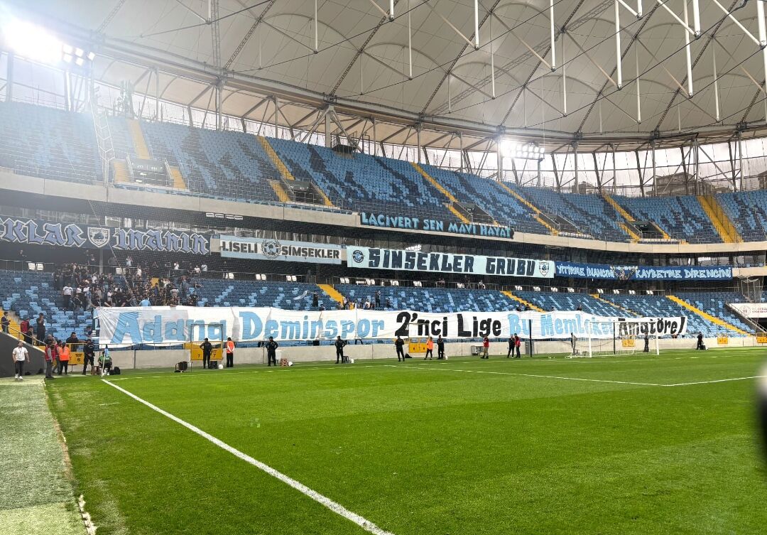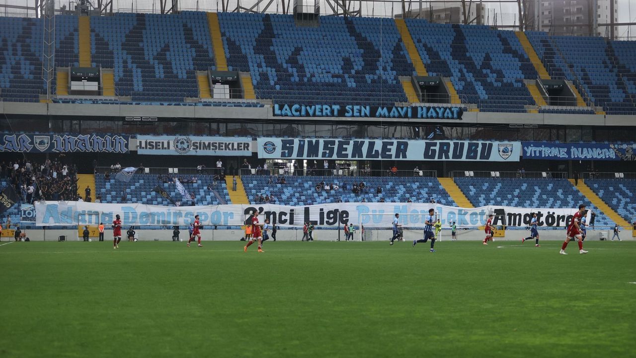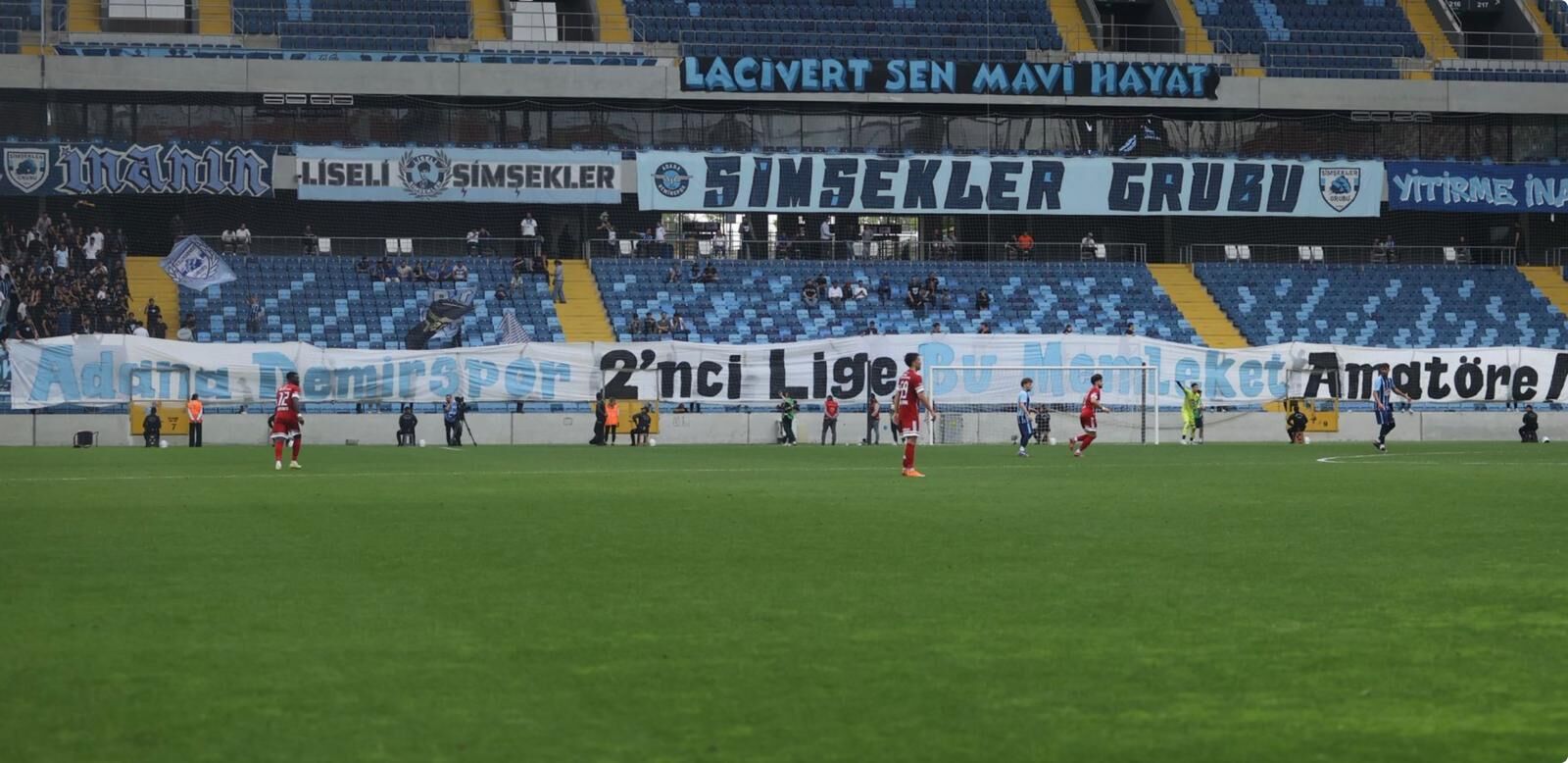 Stadyumda yerini alan taraftarlar, “Adana Demirspor 2’nci Lige Bu Memleket Amatöre” yazılı dev pankartla hem geçmişe vurgu yaptı hem de kulübün yaşadığı zorlu süreçlere dikkat çekerek Adana'ya mesaj verdiler.