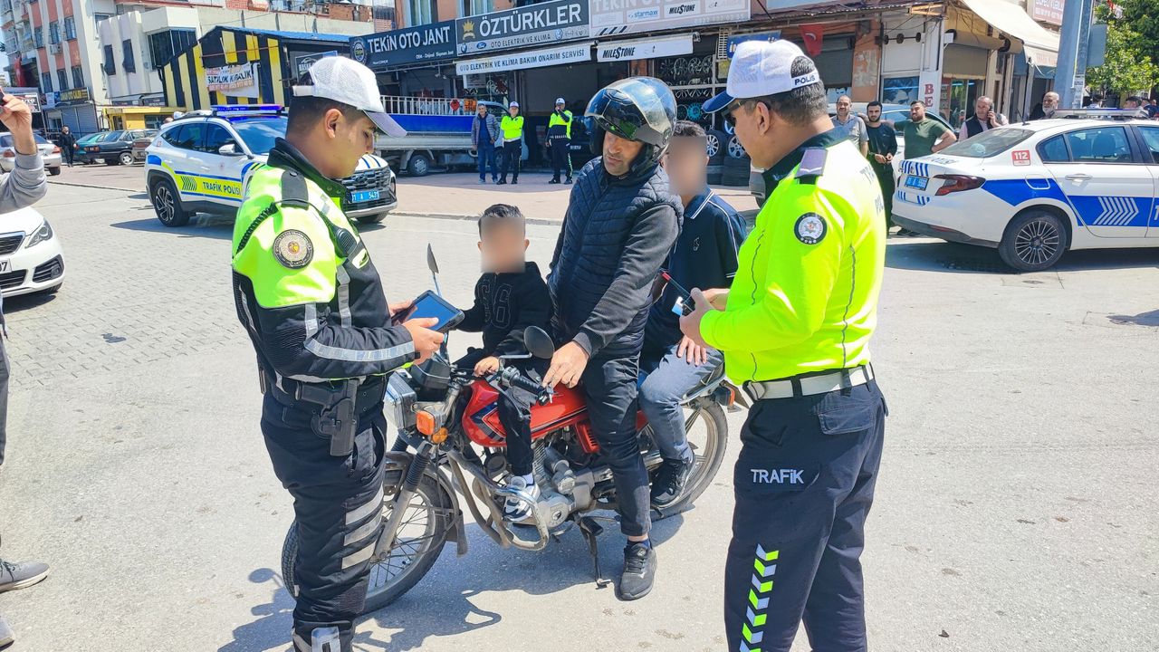 Uygulama sırasında ekiplerin dikkatini çeken bir motosiklet sürücüsünün, fiziksel engelli oğlunu kask ve gerekli güvenlik önlemleri olmadan motosikletin ön kısmında taşıdığı tespit edildi. Polis ekipleri tarafından durdurulan sürücüye gerekli cezai işlem uygulanırken, çocuğun güvenliği konusunda uyarılarda bulunuldu.