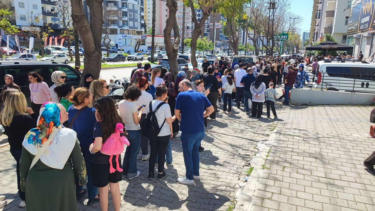 Adana'nın Çukurova ilçesinde bir iş yeri, tüm ürünlerin 100 TL'den satışa sunulduğunu duyurdu. İndirimi duyanlar saatler önce iş yerinin önünde uzun kuyruklar oluşturdu.