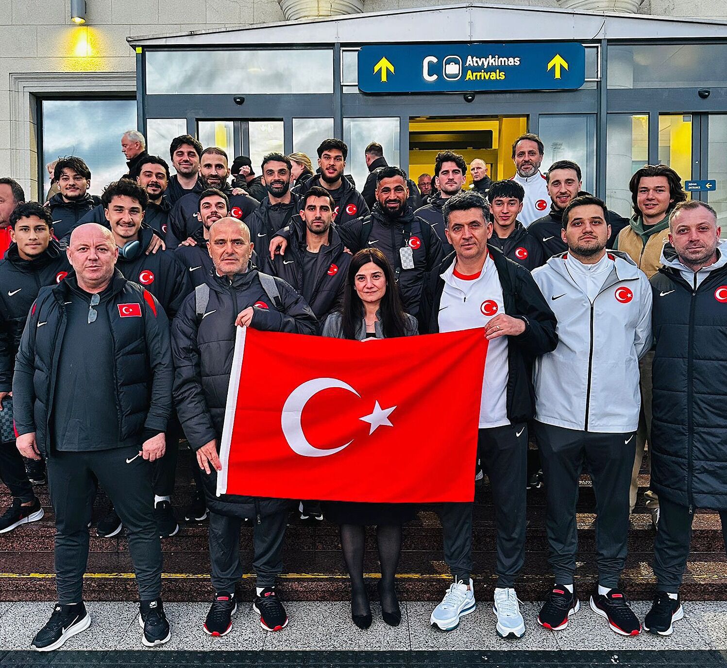 Litvanya seyahatini dün gerçekleştiren Millîlerimizi, Vilnius Havalimanı'nda T.C. Vilnius Büyükelçisi Esra Toplu ve büyükelçilik kâtibi karşıladı. Türkiye Futbol Federasyonu adına Büyükelçi Toplu'ya millî takım forması takdim edildi ve hatıra fotoğrafı çekildi. Kadroda Adanalılar da var. Adana Demirspor’un golcüsü Ahmet Bolat ile daha önce Adana Demirspor forması giymiş ve teknik heyette yer almış Ersin Aydınalp da başarı için ter dönecek.