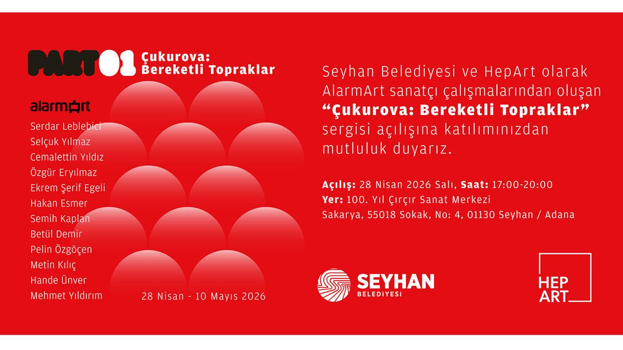 AlarmArt sanatçı topluluğu tarafından hazırlanan “Çukurova: Bereketli Topraklar” başlıklı sergi, 28 Nisan’da Seyhan 100. Yıl Çırçır Sanat Merkezi’nde açılacak. Sergi, 28 Nisan–10 Mayıs 2026 tarihleri arasında ziyaret edilebilecek.