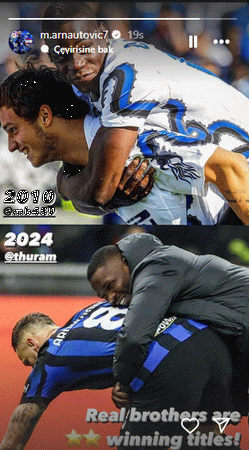 Maçın ardından ise İnter'in golcüsü Arnautovic, eski İnterli ve şimdi Adana Demirspor'da forma giyen Mario Balotelli ile geçmişten bir fotoğrafını paylaştı.