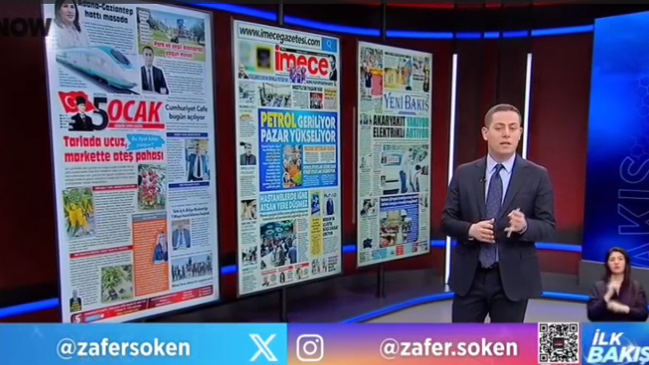 NOW TV’nin sevilen sabah programı "Zafer Söken’le İlk Bakış", yerel gazete manşetlerini değerlendirdiği bölümde Adana, Mersin ve İzmir’den seçtiği önemli haberleri izleyicileriyle paylaştı. Söken Adana'dan 5 Ocak Gazetesi'nin manşetini gündemine taşıdı.