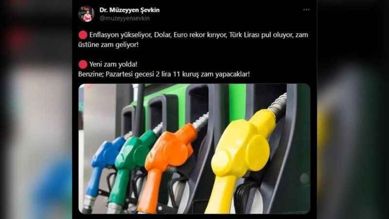 Sosyal medya hesabından yaptığı paylaşımda, “ Enflasyon yükseliyor, dolar, Euro rekor kırıyor, Türk lirası pul oluyor, zam üstüne zam geliyor! Yeni zam yolda! Benzine; pazartesi gecesi 2 lira 11 kuruş zam yapacaklar” şeklinde konuşan Şevkin, ardı arkası kesilmeyen zamların artık bir son bulması gerektiği çağrısında bulundu.