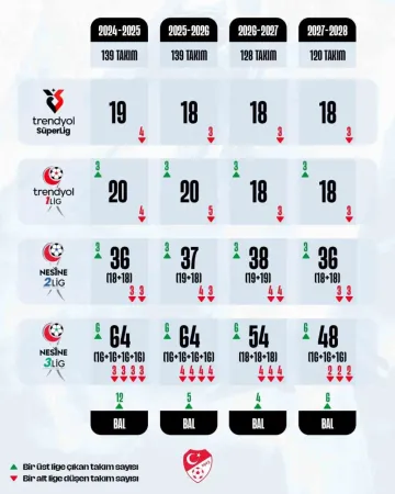 2020-2021 sezonunda 21 takımla oynanan Süper Lig başta olmak üzere, tüm liglerde kademeli olarak takım sayısının düşürülmesi hedeflense de 2023’teki deprem felaketinden etkilenen kulüplerin ligden çekilme talepleri sebebiyle hedeflenen sayıya ulaşılamadı.